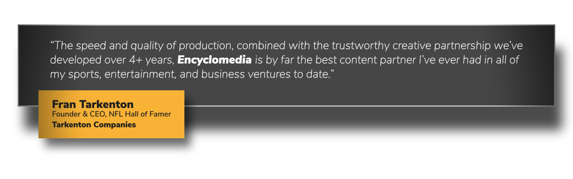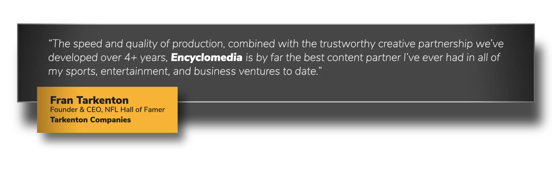 “The speed and quality of production, combined with the trustworthy creative partnership we’ve developed over 4+ years, Encyclomedia is by far the best content partner I’ve ever had in all of my sports, entertainment, and business ventures to date.”